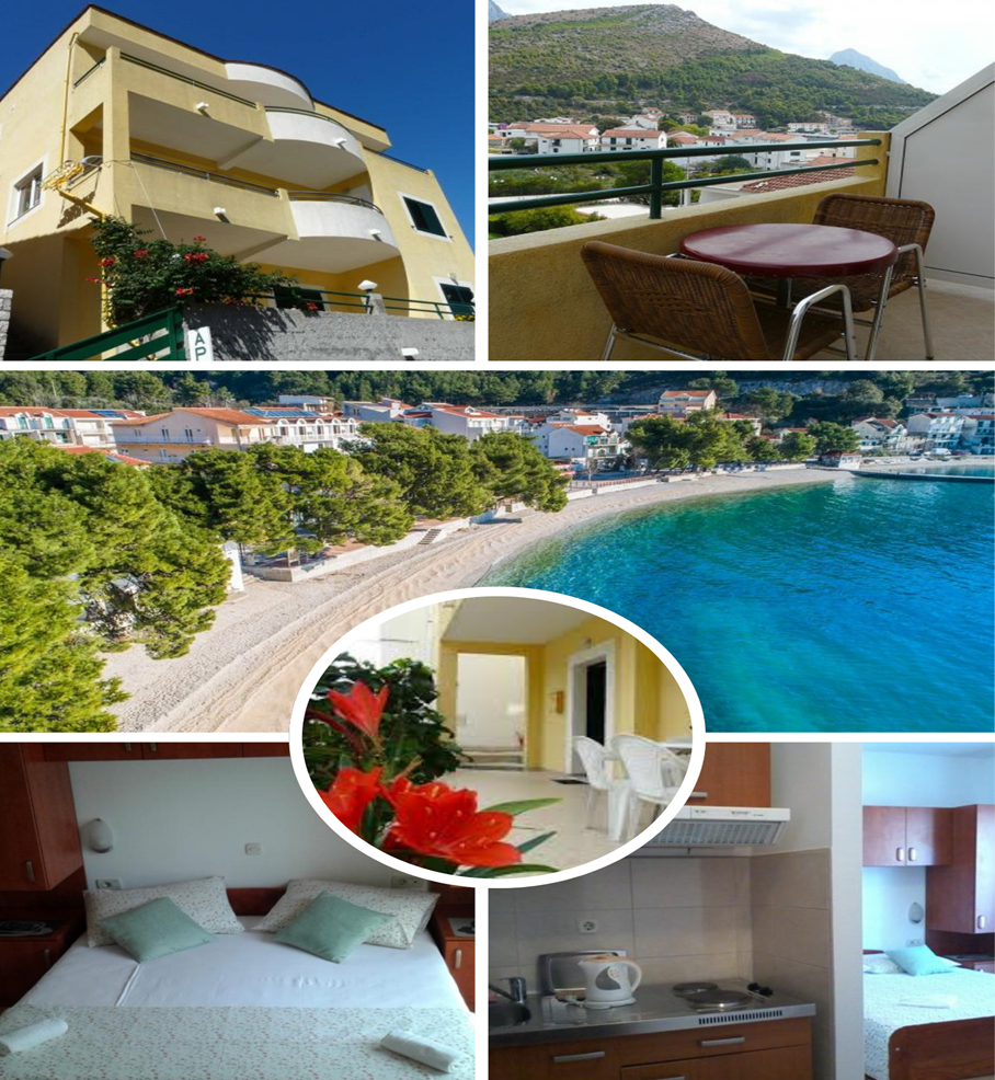 Naši apartmani su udaljeni 100 metara ili samo 2 minute hoda od mora i prekrasne šljunčane plaže. Na samo 10 minuta hoda imate betonsko-stjenovitu plažu gdje možete uživati u intimnijem ambijentu. Na raspalaganju su Vam apartmani Studio 2, Studio 2+1, 3+1, 4+1. Ljubazni domaćini učiniti će sve da Vam odmor bude ugodan i opušten.
